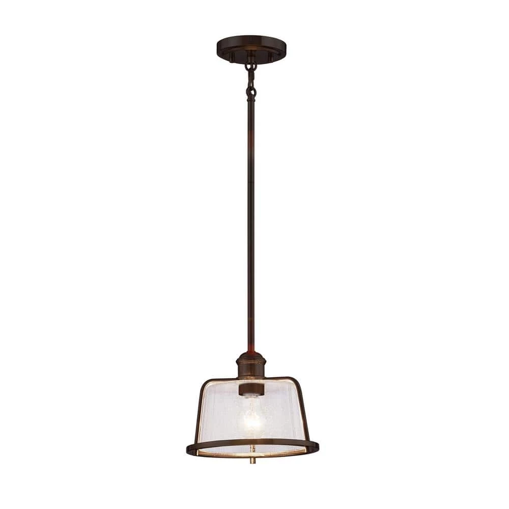 This 1-light Pendant from the Revere collection by Justice Design will enhance your home with a perfect mix of form and function. The features include a Dark Bronze finish applied by experts. Available in larger sizes: 12 in. Dia. (FSN-4423) and 16 in. Dia. (FSN-4424).