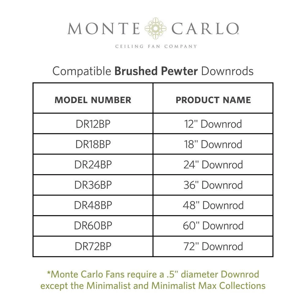 The Monte Carlo extension down rod offers added flexibility in placing fans in the exact setting desired. This decorative 1/2 inch diameter down rod comes with pre-drilled holes on both ends. For Optimum performance, we recommend that your ceiling fan be installed with the blades suspended 7 ft. to 9 ft. above the floor