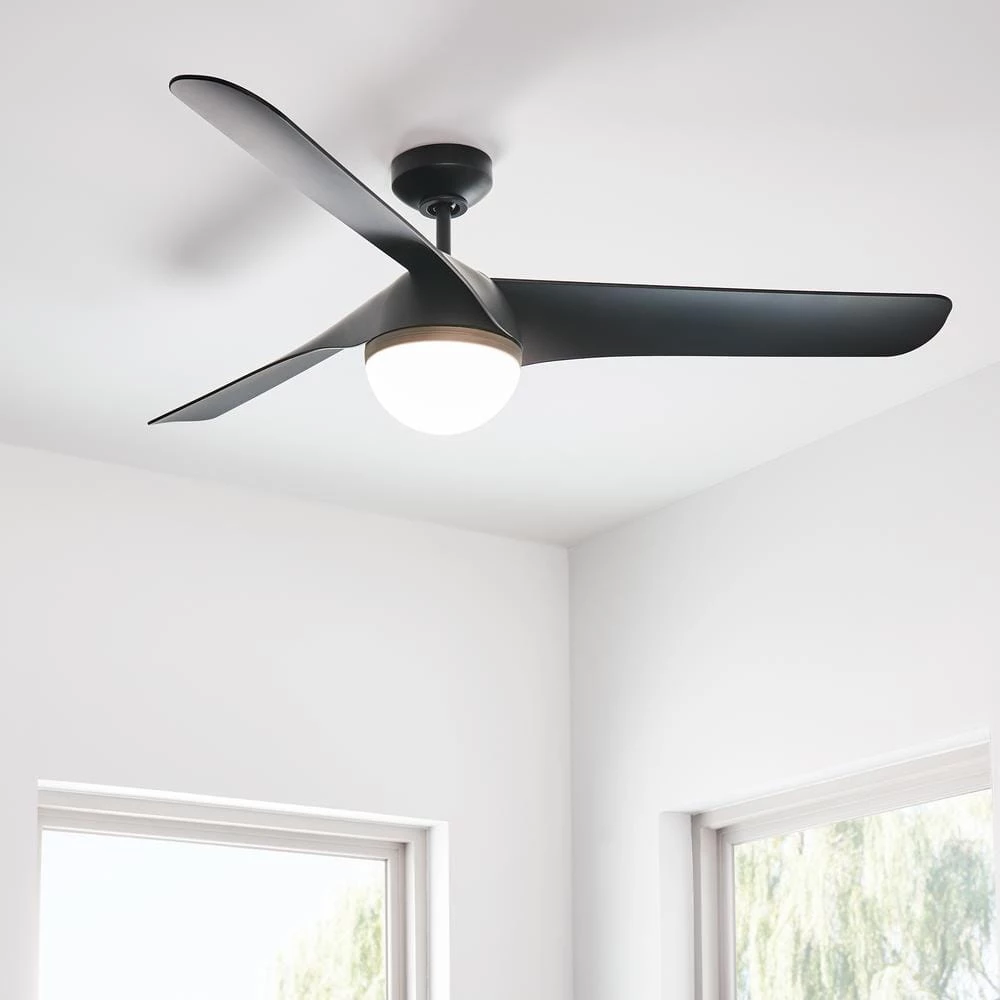 The subtle centric curves in the 3 overlapping blades of the Akova LED flush mount ceiling fan by Monte Carlo take modern form and function to new expressions. Akova LED offers an interlacing swirl of motion in the 56 in. blades and a 20-Watt integrated LED downlight delivering 1600-Lumen of output. Akova is reversible, comes with a handheld remote control to switch between the 3-speeds and has 3 distinctive finish options that match on both body and blade: Matte White, Matte Black and Chrome.