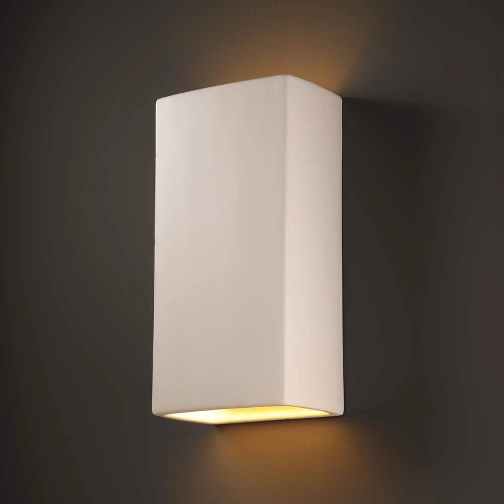 This wall sconce comes in a bisque finish. It is made of hand-crafted ceramic. Justice Design’s ceramic fixtures are hand-cast and hand-textured in Los Angeles, carefully inspected and individually hand-finished to ensure satisfaction.