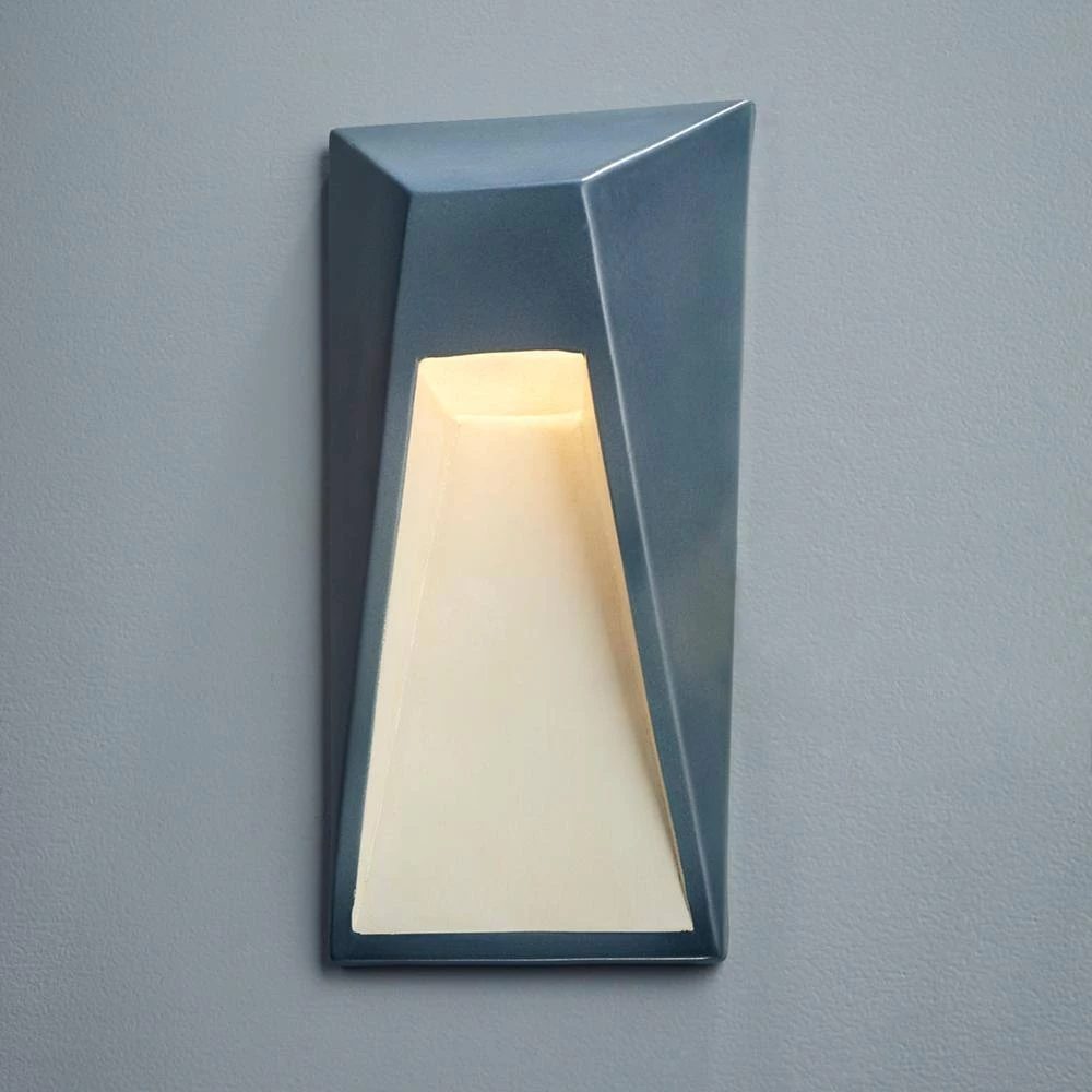 This sconce comes in a midnight sky with matte white internal finish. It is constructed of hand-made ceramic. Justice Design’s ceramic fixtures are hand-cast and hand-textured in Los Angeles, carefully inspected and individually hand-finished to ensure satisfaction.
