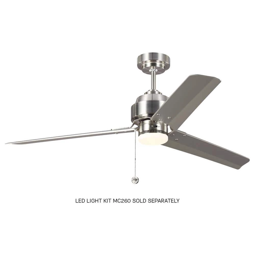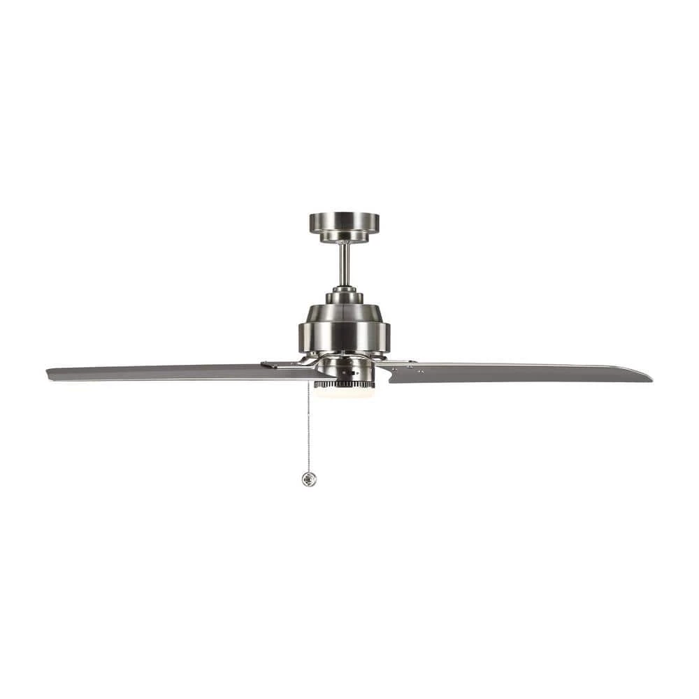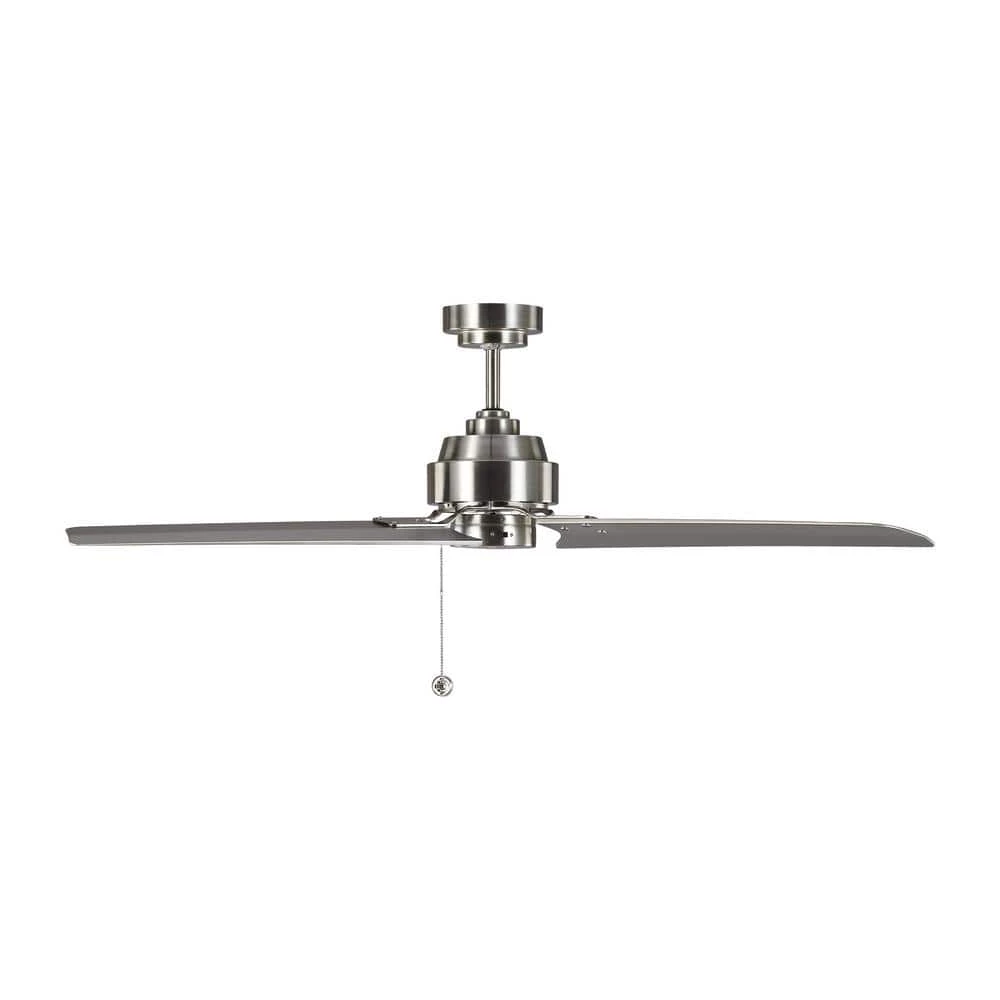 Cool off your space with this Arcade 54 in. Indoor Brushed Steel Ceiling Fan with Silver Blades and 3-Speed Pull Chain. It features a modern brushed steel finish and 10-degree blade pitch that allows for maximum airflow. Easily use this in your living room, bedroom or other spaces around your home.