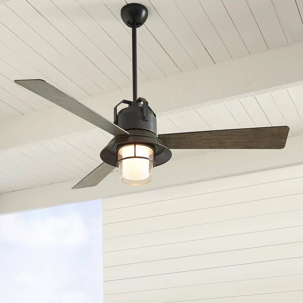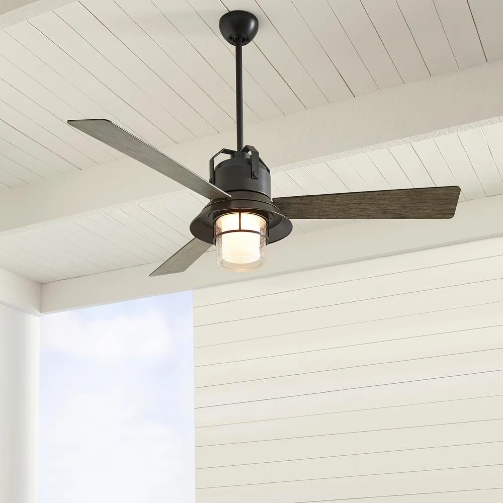 The Boynton 54 in. flush mount ceiling fan expands on the existing Boynton outdoor family from the Feiss collection to offer a complete outdoor lighting experience. The Boynton fan adds beauty and style to any outdoor living space. A powerful, yet energy efficient DC motor ensures the Boynton runs smoothly and quietly, creating great air circulation with every turn. Available in two finishes: Painted Brushed Steel and Antique Bronze.