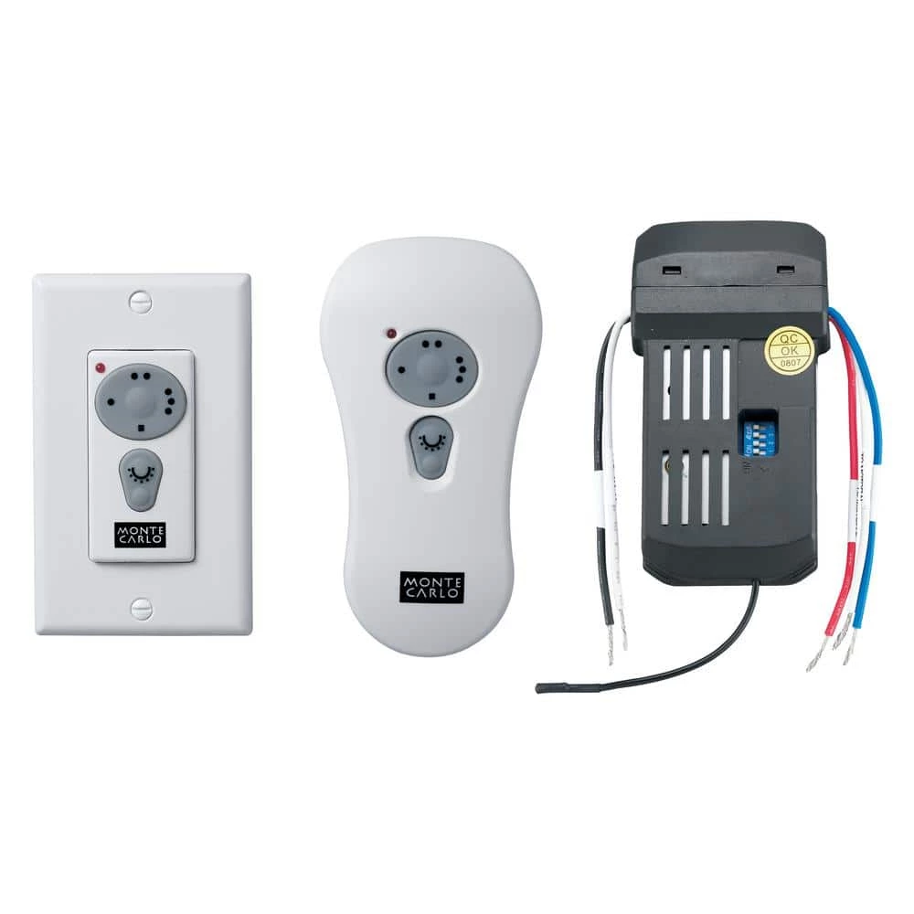 Non-reversing fan and dimming downlight control. Canopy installed receiver. Combo wall/hand-held kit.