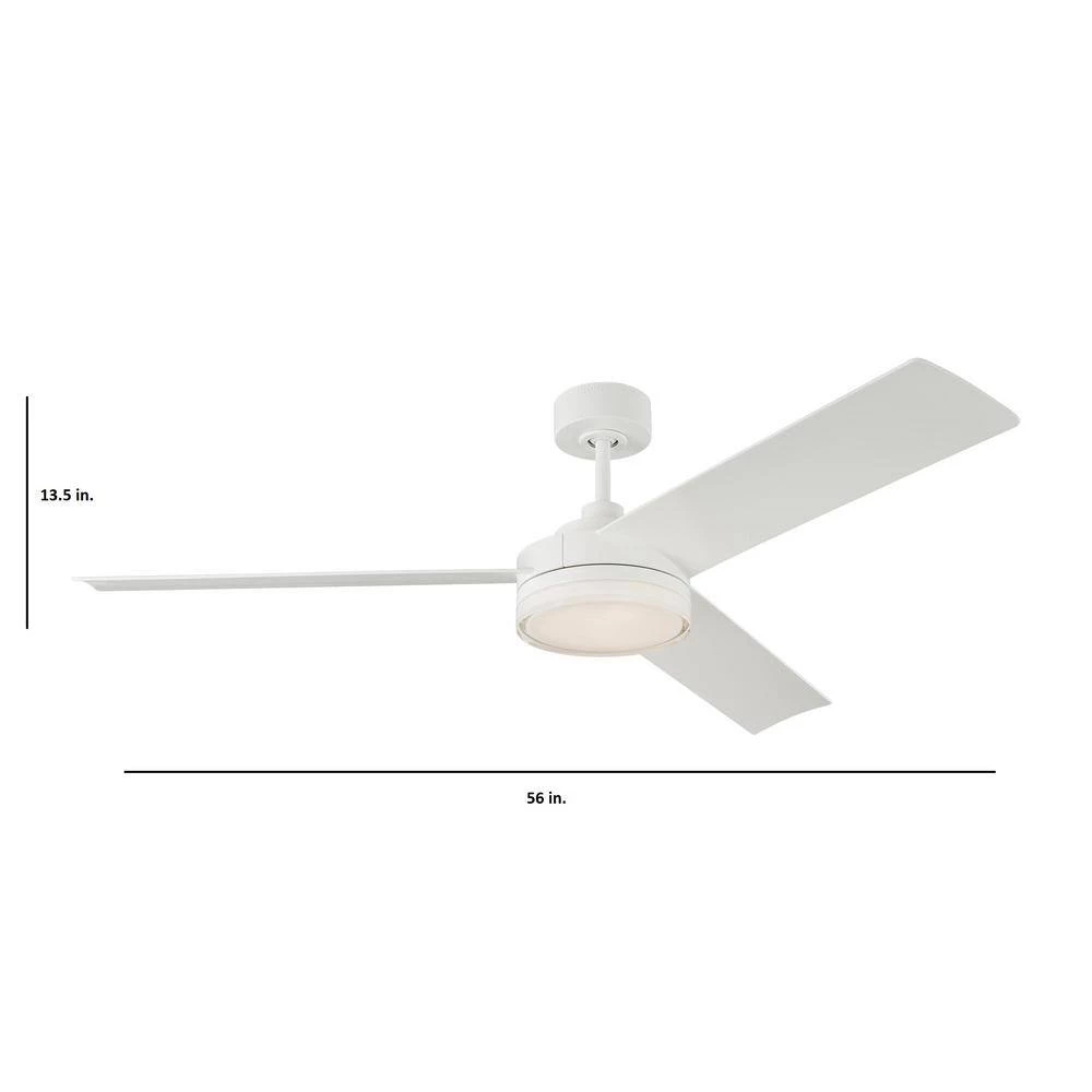 Smooth, handsome lines lend contemporary grace to this tasteful Cirque flush mount ceiling fan. 3 solid blades finished in Matte White or Midnight Black paired with the same finish motor, creating a cohesive look and feel. The Monte Carlo 56 in. Cirque in matte white features a 120.0 mm x 20.0 mm 6-speed motor with a 15° blade pitch.