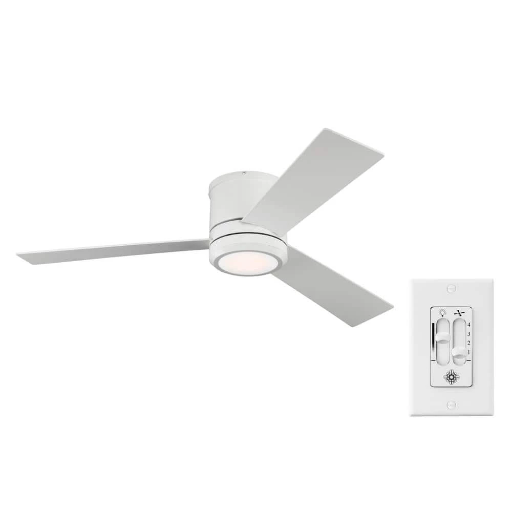 The Clarity Max flush mount ceiling fan by Monte Carlo is a larger and more powerful version of the popular Clarity fan. The 56 inch Clarity Max has a sleek, three-blade design that hugs the ceiling, making it ideal for rooms with low ceilings. It’s offered in three finish combinations to suite virtually any decor requirement. Damp-rated, the Clarity Max also comes with a four-speed wall control with LED dimmer.