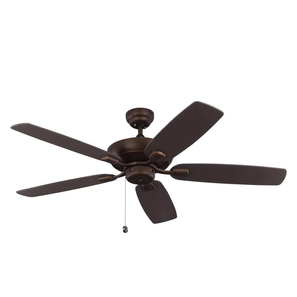 Monte carlo 52 in. colony maximum – roman bronze in roman bronze features a 153.0 X 18.0 3 speed motor with a 12° blade pitch. The tailored silhouette and multiple finish and mounting options of the 52 in. colony max flush mount ceiling fan by monte carlo make it a universal choice for any decor and room size. The colony max is rated for damp locations and has an optional remote control.