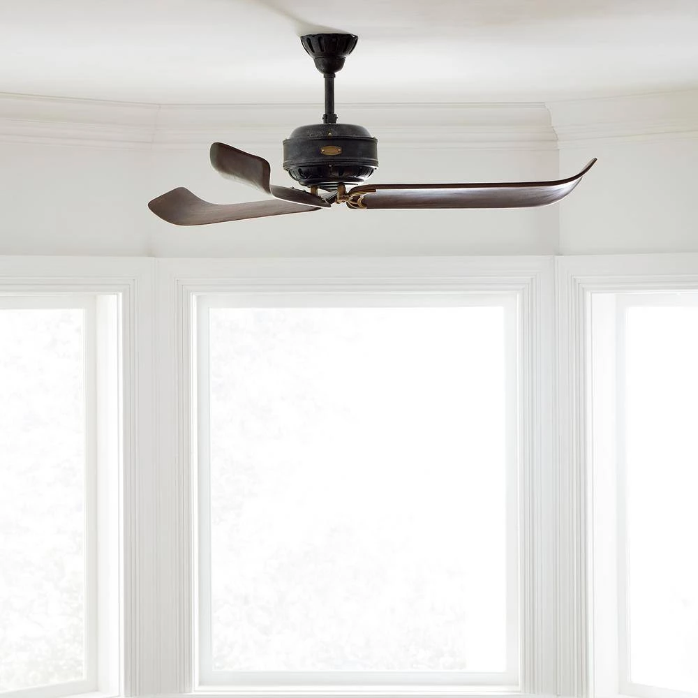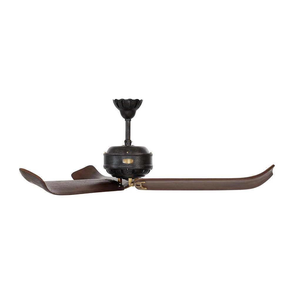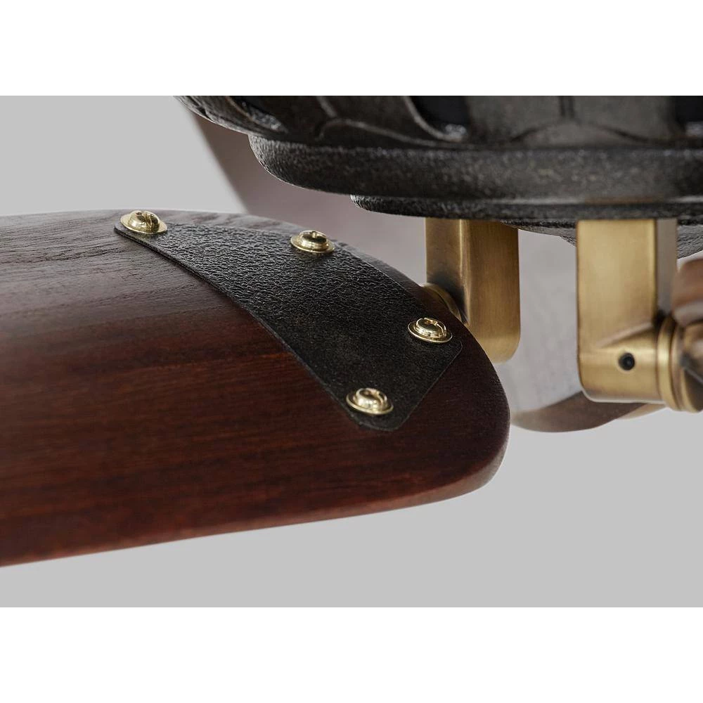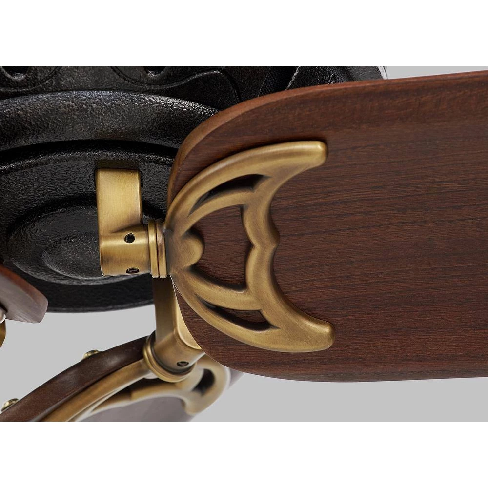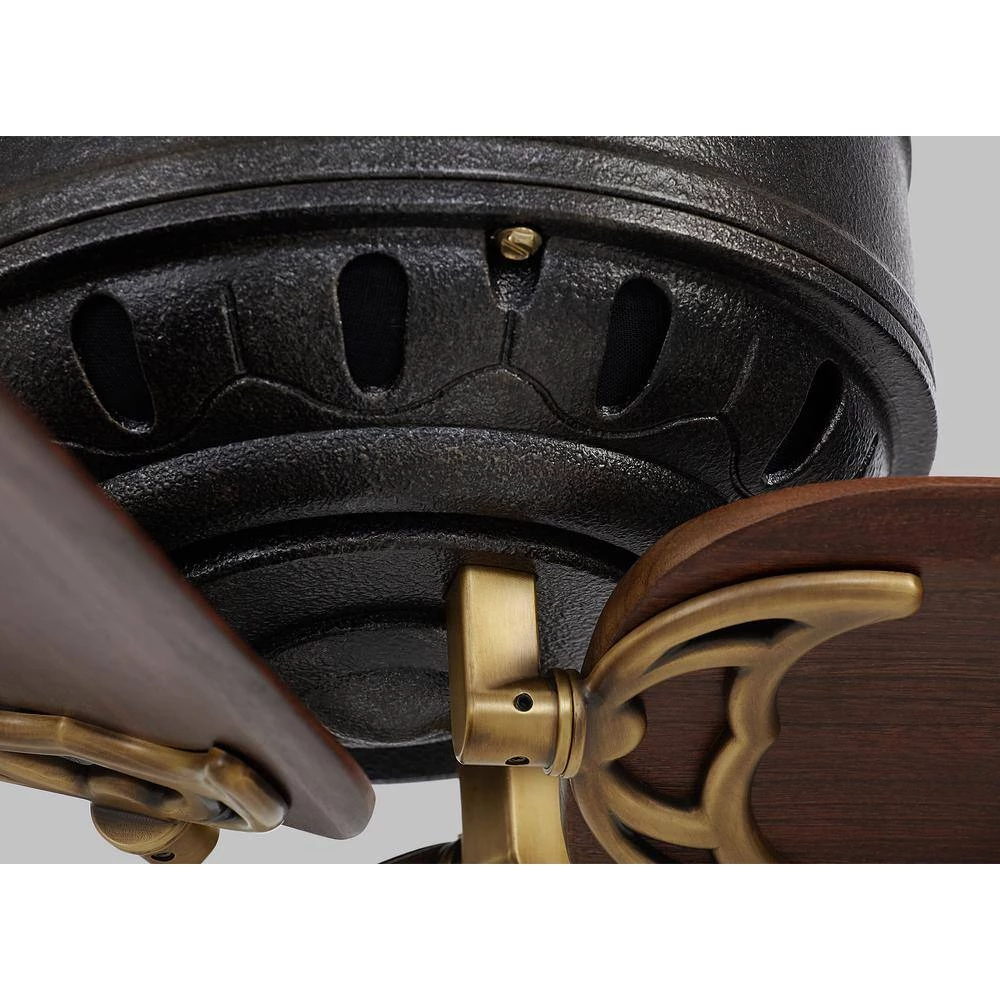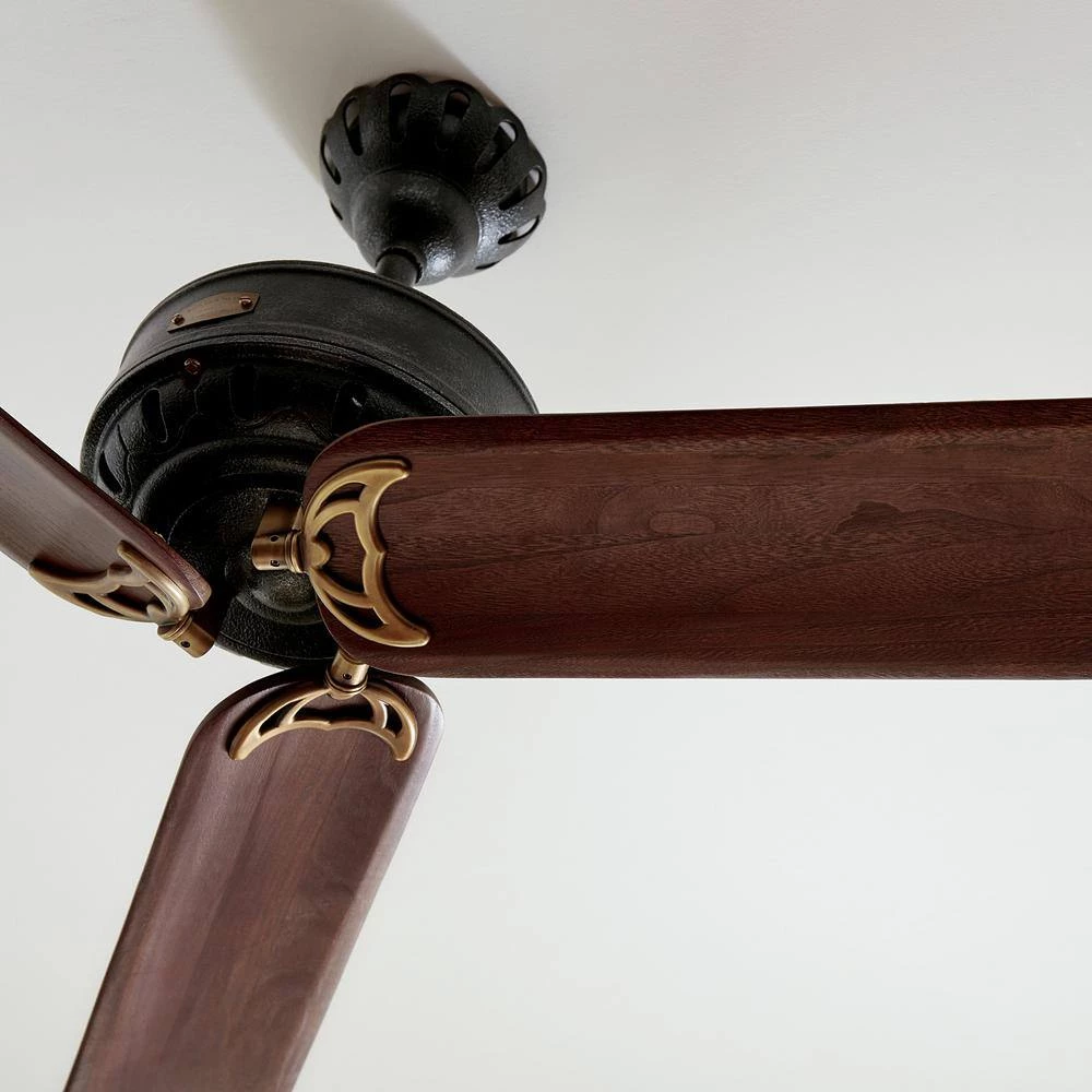 - Hand carved wood blades, hand rubbed antique brass finish and antique iron housing contribute to its sophisticated design