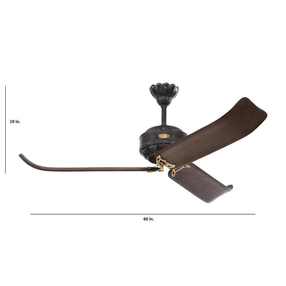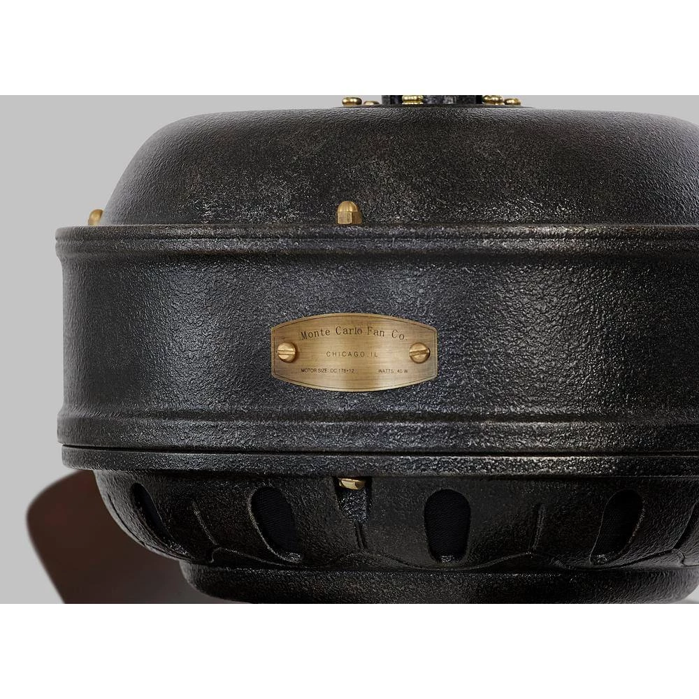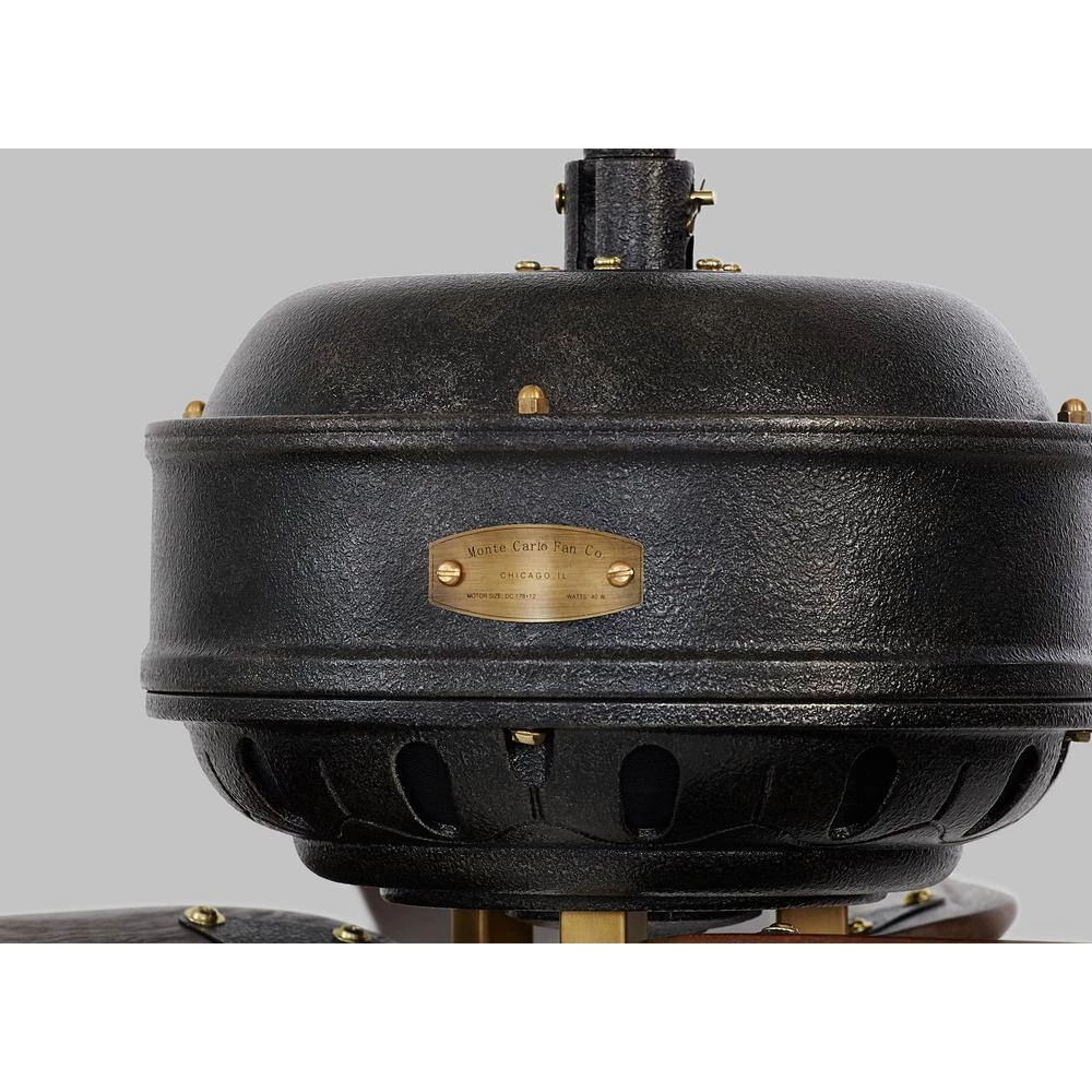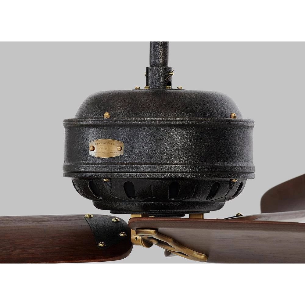 The Monte Carlo Antique-inspired Fans collection is comprised of 4 flush mount fans that feature hand-carved wood blades, cast aluminum motor housing and plated brass blade irons in 4 period correct expressions and each fan has its own distinct personality that will add elegance to any room. The Monte Carlo 60 in. Cupra Antique Iron features a 178.0 mm x 12.0 mm 6-speed motor with a degree blade pitch. Cupra features 3 curved blades, intricate detailing and a refined vintage design. Comes complete with full-function wall control. Available in a Hand Rubbed Antique Brass finish.