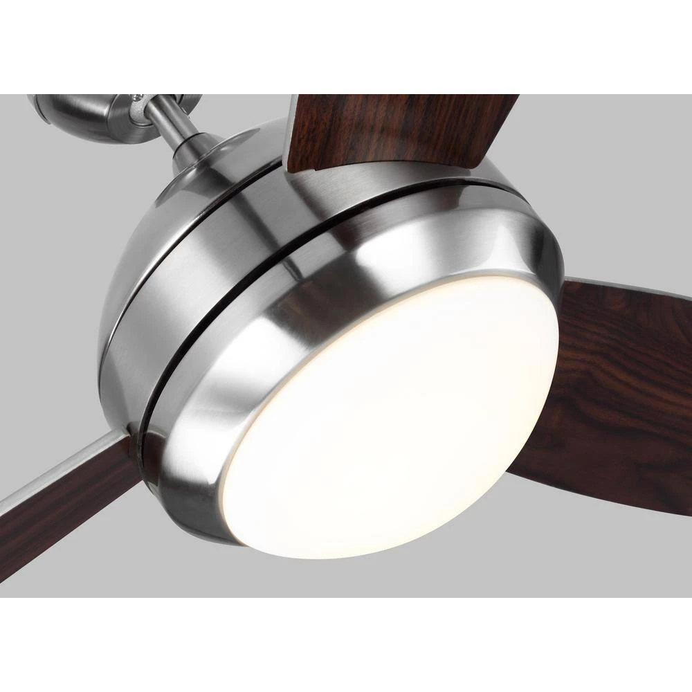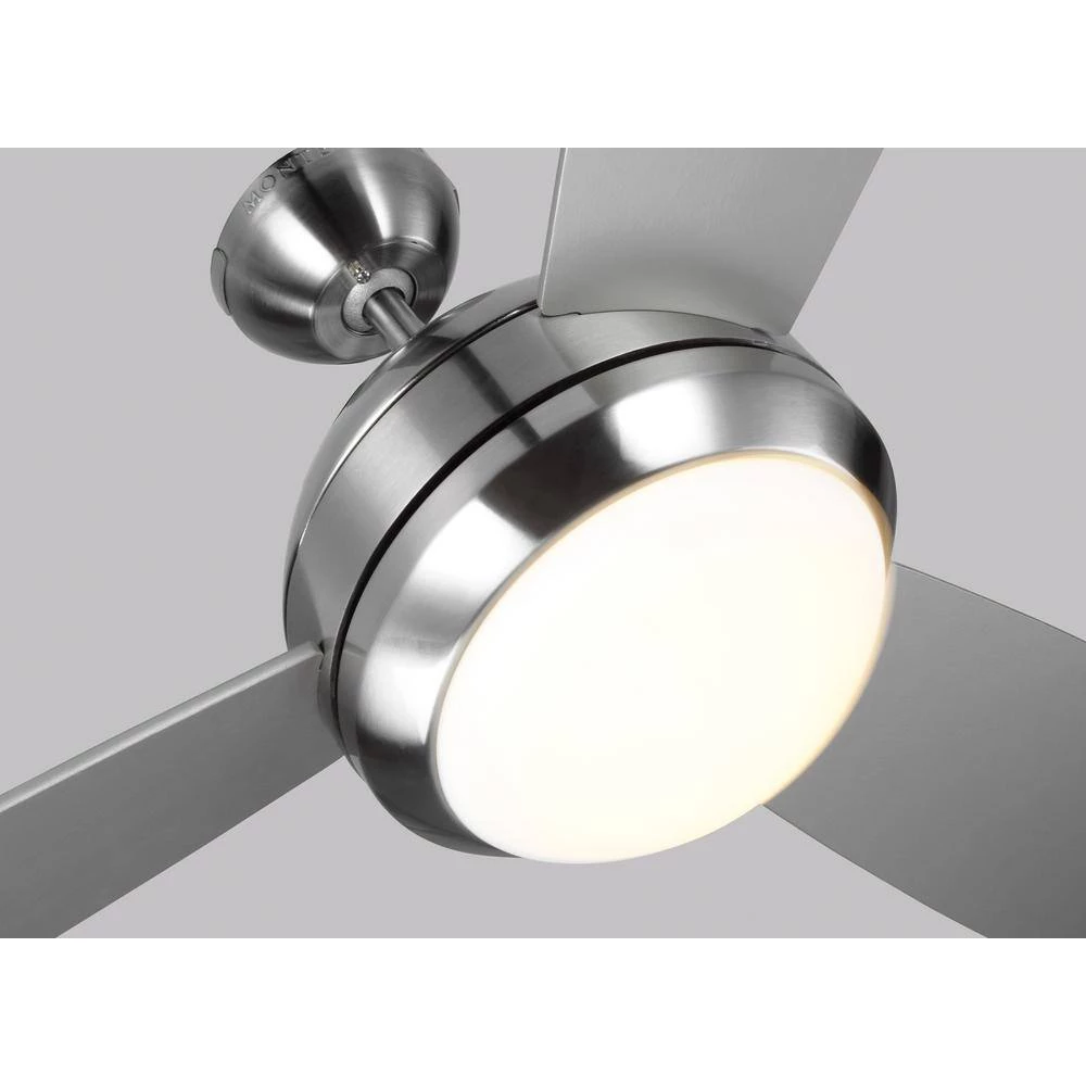 The Discus Trio Max is a three-bladed beauty, taking design inspiration from the popular 52-Discus flush mount ceiling fan by Monte Carlo. With a minimalist, contemporary design, and three color (finish) options, one of which has reversible dual-finish blades, it can complement a wide variety of room decor. The Discus Trio Max features a dimmable integrated 18-Watt LED downlight with 700 net lumens of output, 2700K CCT and a CRI of 90+. An optional finishing cap is available (sold separately) for use without the light kit. Damp-rated for indoor/outdoor use, the Discus Trio Max also comes with a hand-held remote control with six speeds, reverse and LED light dimmer.
