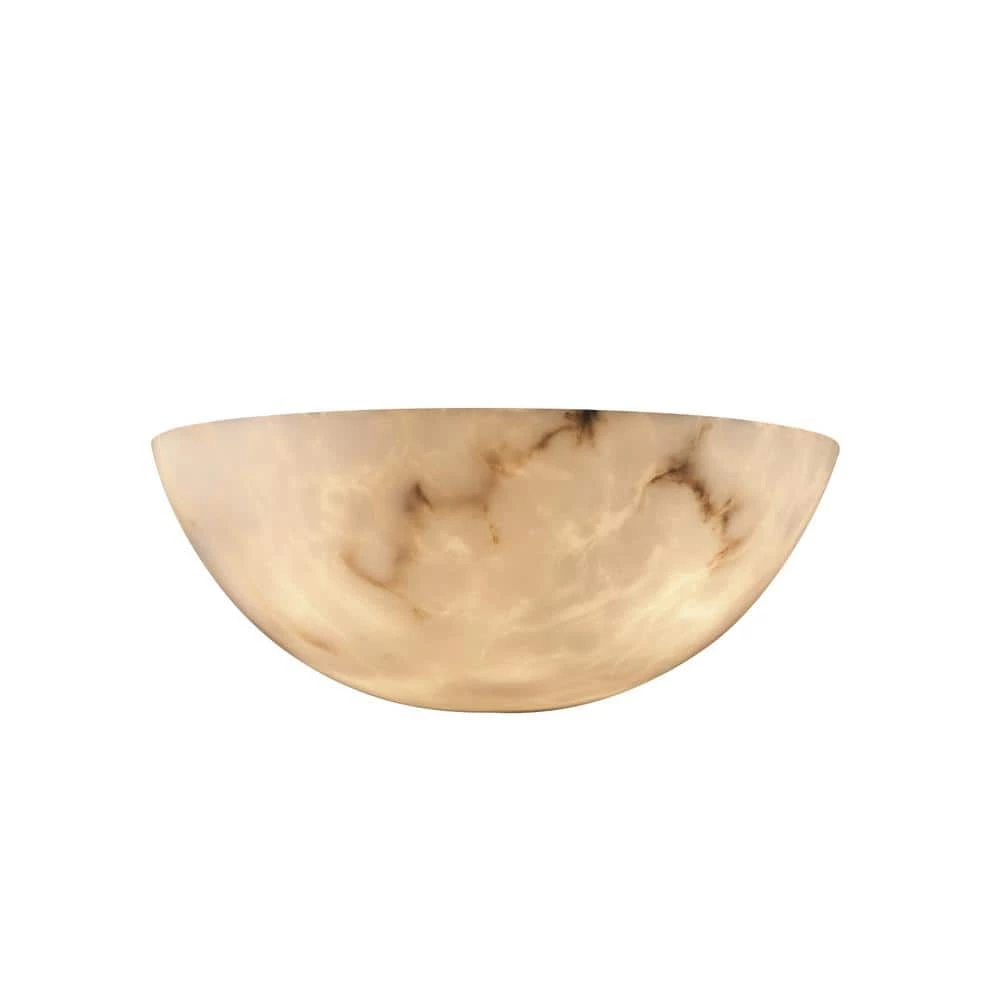 The LumenAria Collection of faux alabaster fixtures provides the warmth and glow of genuine carved alabaster without the cost. This LumenAria wall sconce comes with a faux alabaster shade. A transitional style fixture by Justice Design, perfect for any living room, dining room or bedroom.