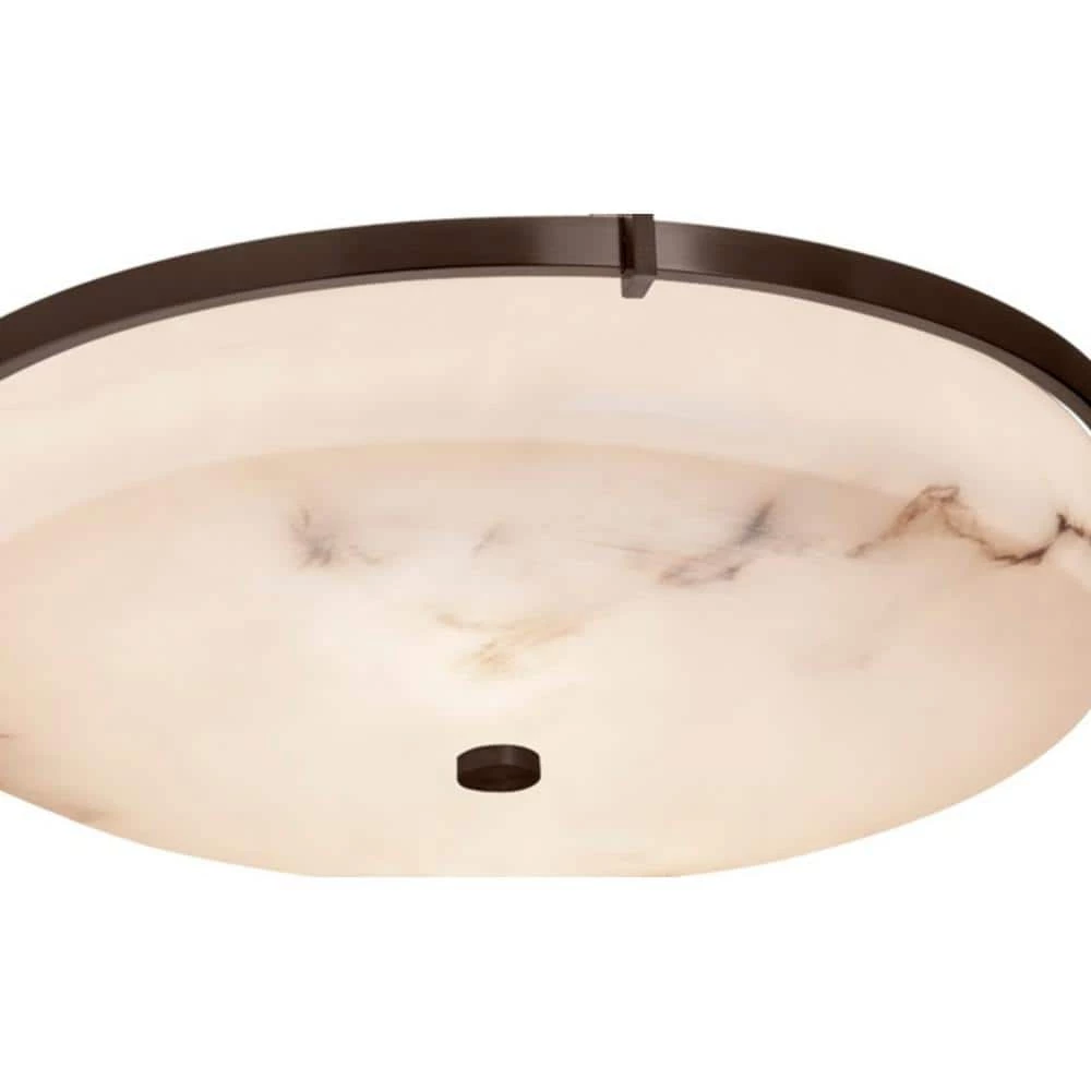 The LumenAriaTM Collection of faux alabaster fi xtures provides the warmth and glow of genuine carved alabaster without the cost. Fixture dimmable, dependent of lamp type used. Constructed of metal with a dark bronze finish.
