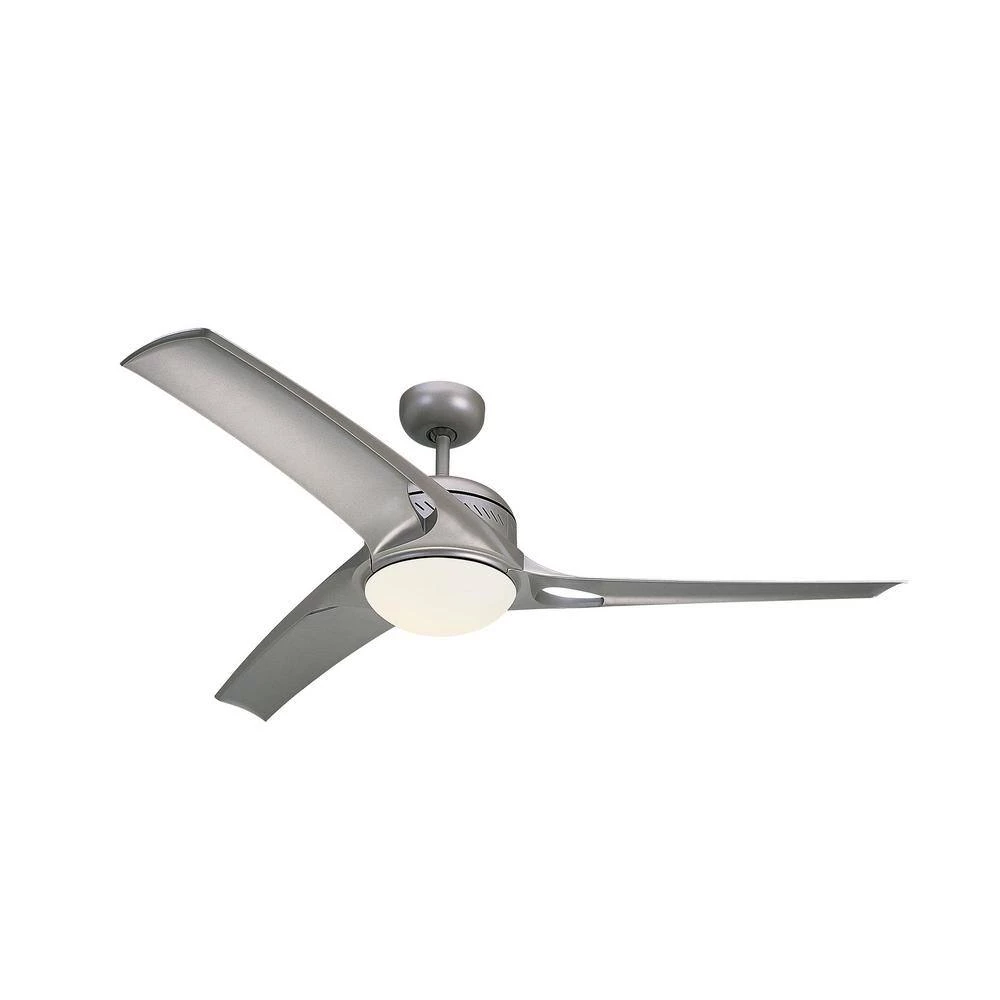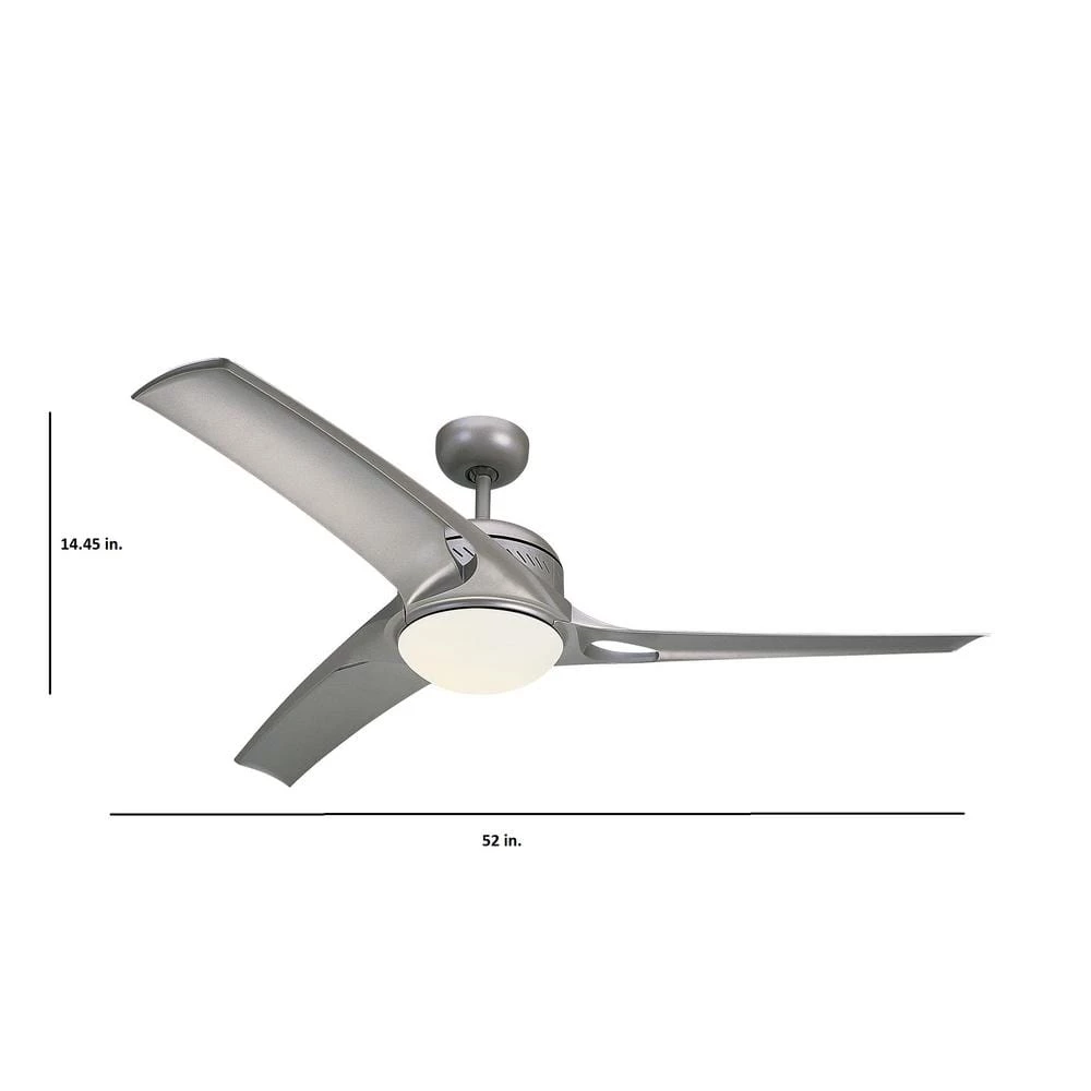 The Monte Carlo 52 in. Mach 4 Fan – Titanium in titanium features a 172.0 x 20.0 3-speed motor with a 13° blade pitch. The modern design of the Mach One flush mount ceiling fan by Monte Carlo dazzles with an aerodynamic, sleek design with 3 blades and a 52 in. blade sweep. The integrated downlight in Matte Opal glass will light up a room. This fan also includes a 2-in-1 remote control (combo hand-held and wall mount) and downrod.