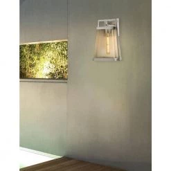 Fusion Obispo 1-Light Brushed Nickel Outdoor Wall Sconce with Seeded Glass Shade by Justice Design