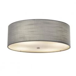 Textile Classic 3-Light Brushed Nickel Drum Pendant with Gray Linen Fabric Shade by Justice Design