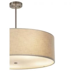 Textile Classic 6-Light Brushed Nickel Drum Pendant with Cream Linen Fabric Shade by Justice Design