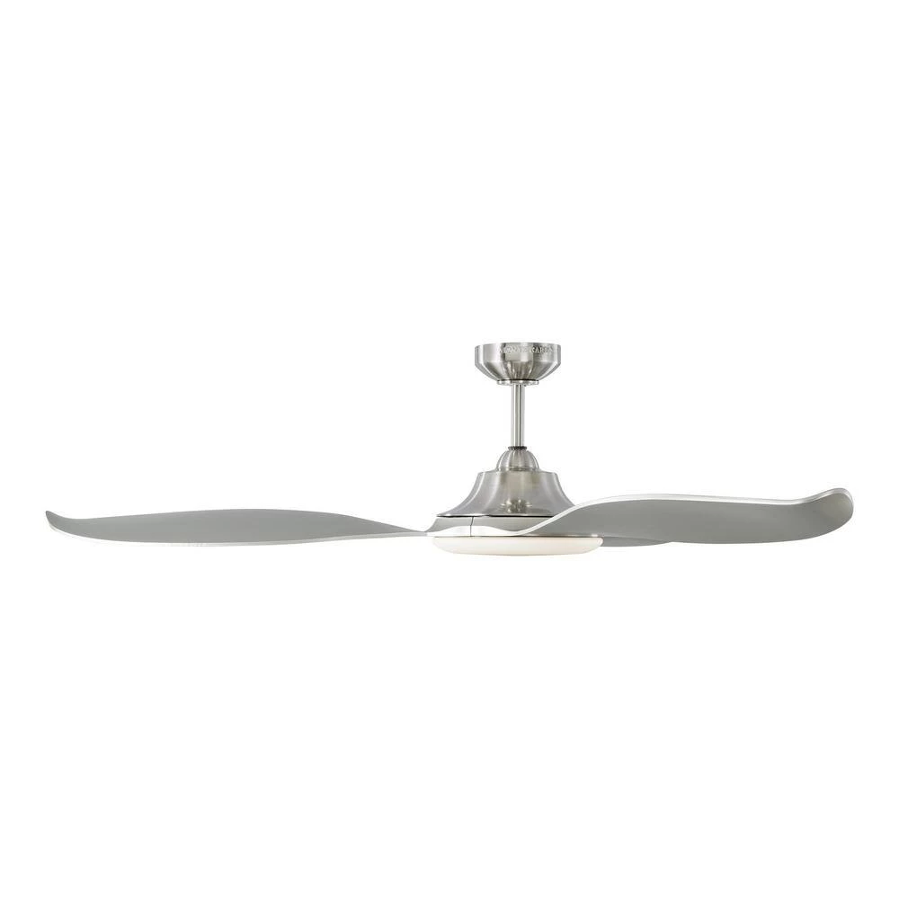 The Stockton flush mount ceiling fan by Monte Carlo is a damp rated indoor/outdoor 3 blade LED design with lots of character. The vintage blades and modern design makes this fan truly spectacular. The LED modern light with the vintage touches add additional appeal to the overall look. Available in 4 finish options- Aged Pewter Housing with Weathered Oak Blades, Brushed Steel Housing with Silver Blades, Midnight Black Housing with Midnight Black Blades and Matte White Housing with Matte White Blades.