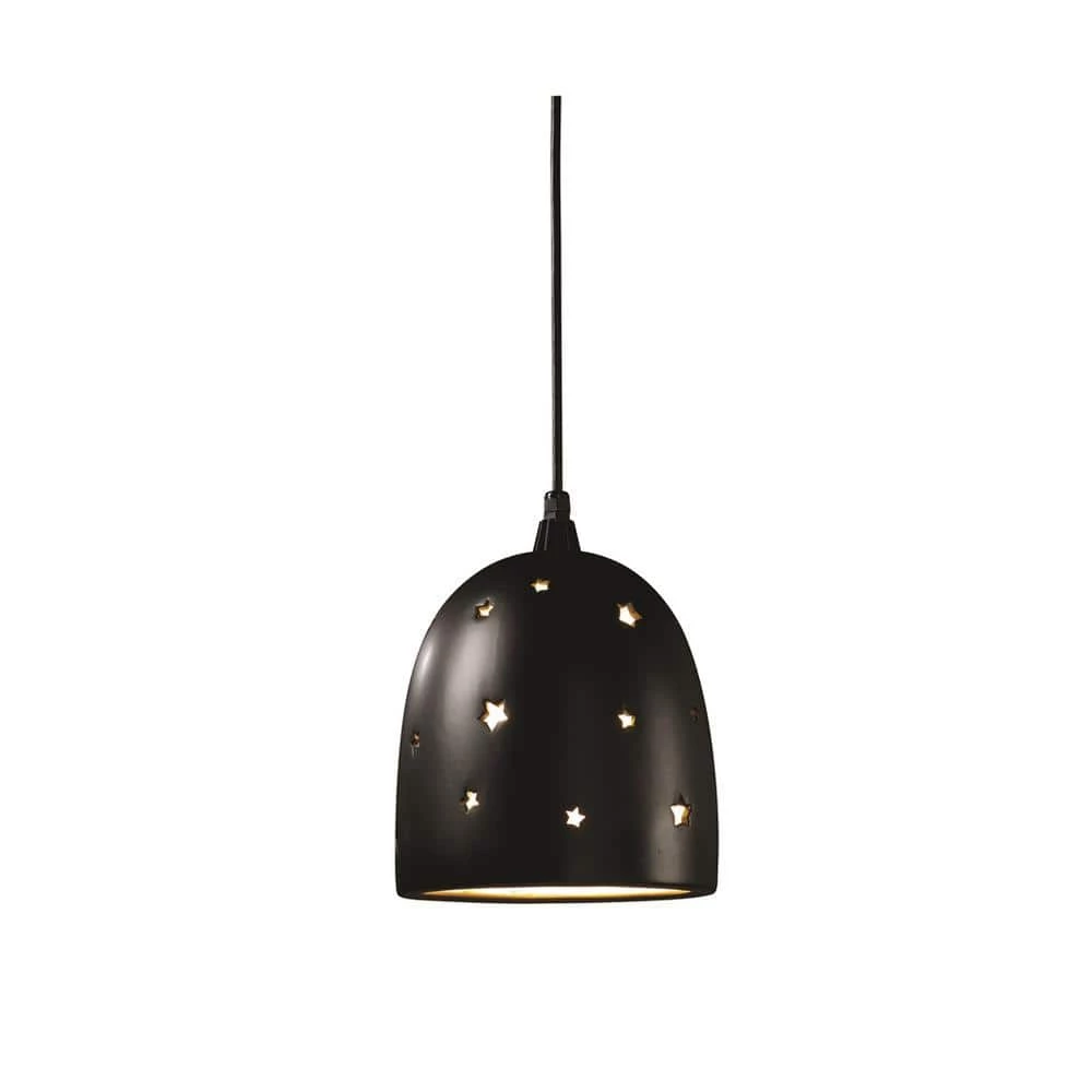 This pendant comes in a carbon matte black finish. It is made of hand-crafted ceramic. Justice Design’s ceramic fixtures are hand-cast and hand-textured in Los Angeles, carefully inspected and individually hand-finished to ensure satisfaction.