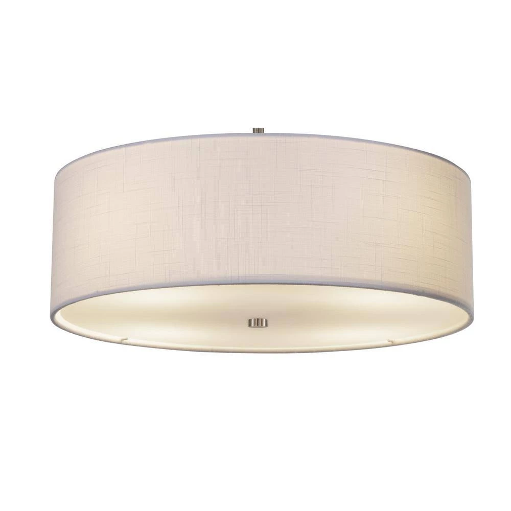 Textile Classic 3-Light Brushed Nickel Drum Pendant with White Linen Fabric Shade by Justice Design